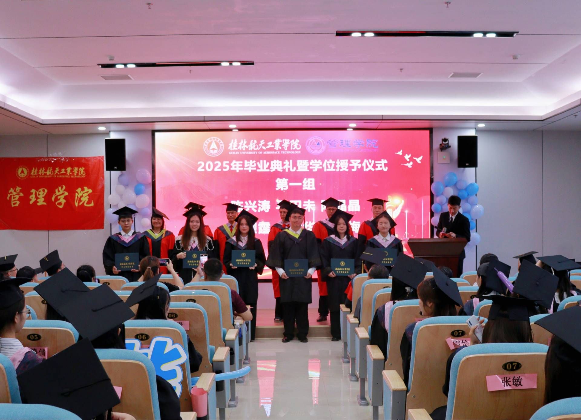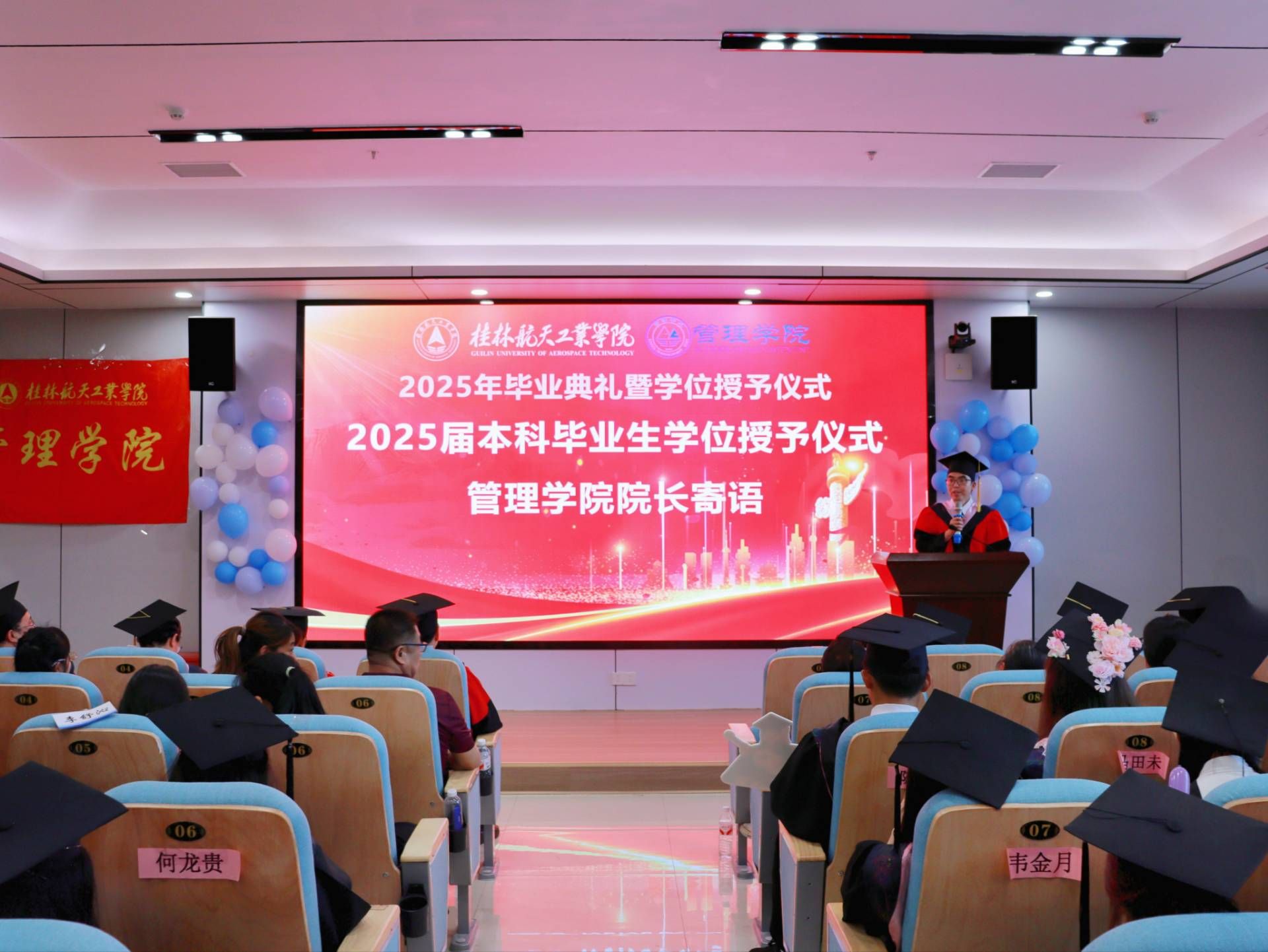 六月的桂航,阳光灿烂,繁花似锦。6月19日,bevictor伟德2025届毕业典礼暨学位授予仪式在南校区问天楼小报告厅隆重举行。学院党委书记尹剑武、院长周小勇、党委副书记潘小玲、副院长阳正义、副院长徐平磊、各教研室主要负责人、毕业班辅导员、满载收获的2025届毕业生及家长代表齐聚一堂,共同见证这一庄严而充满希望的青春盛典。