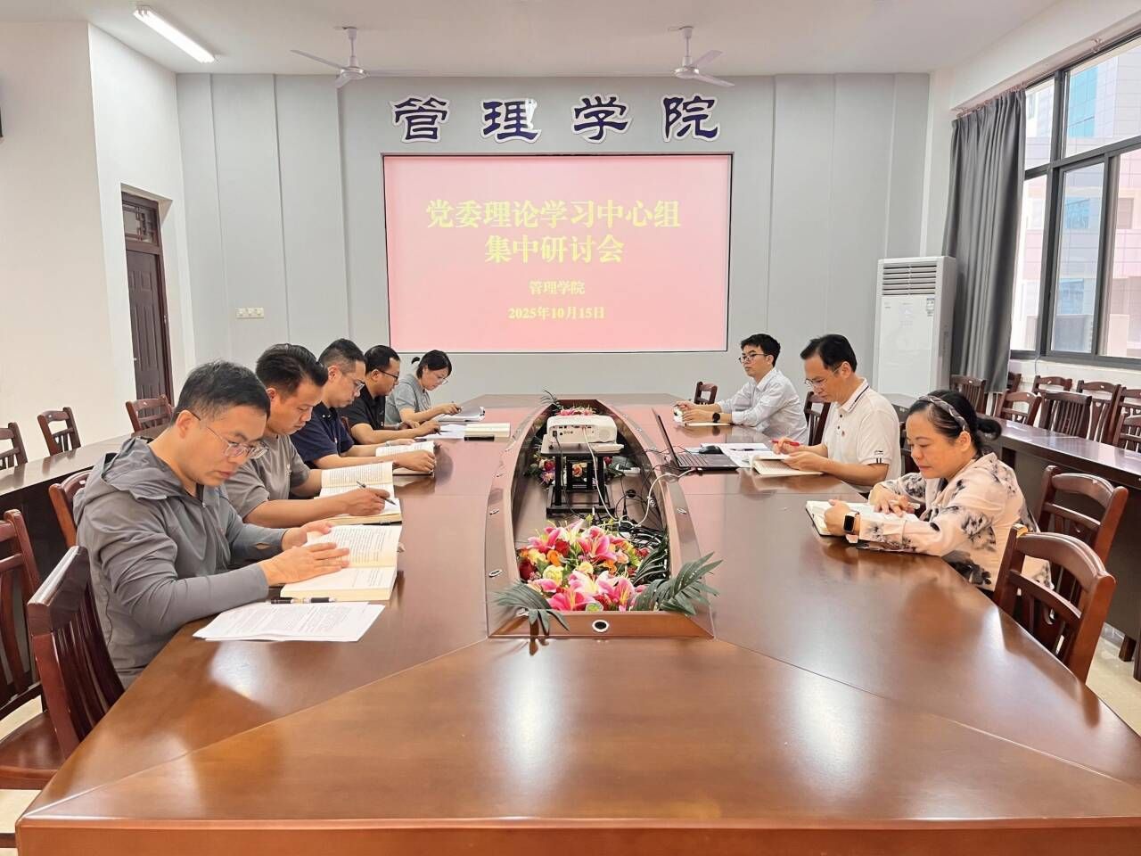 10月15日上午,bevictor伟德党委理论学习中心组召开学习会,学习《习近平谈治国理政》第五卷,并进行讨论交流。