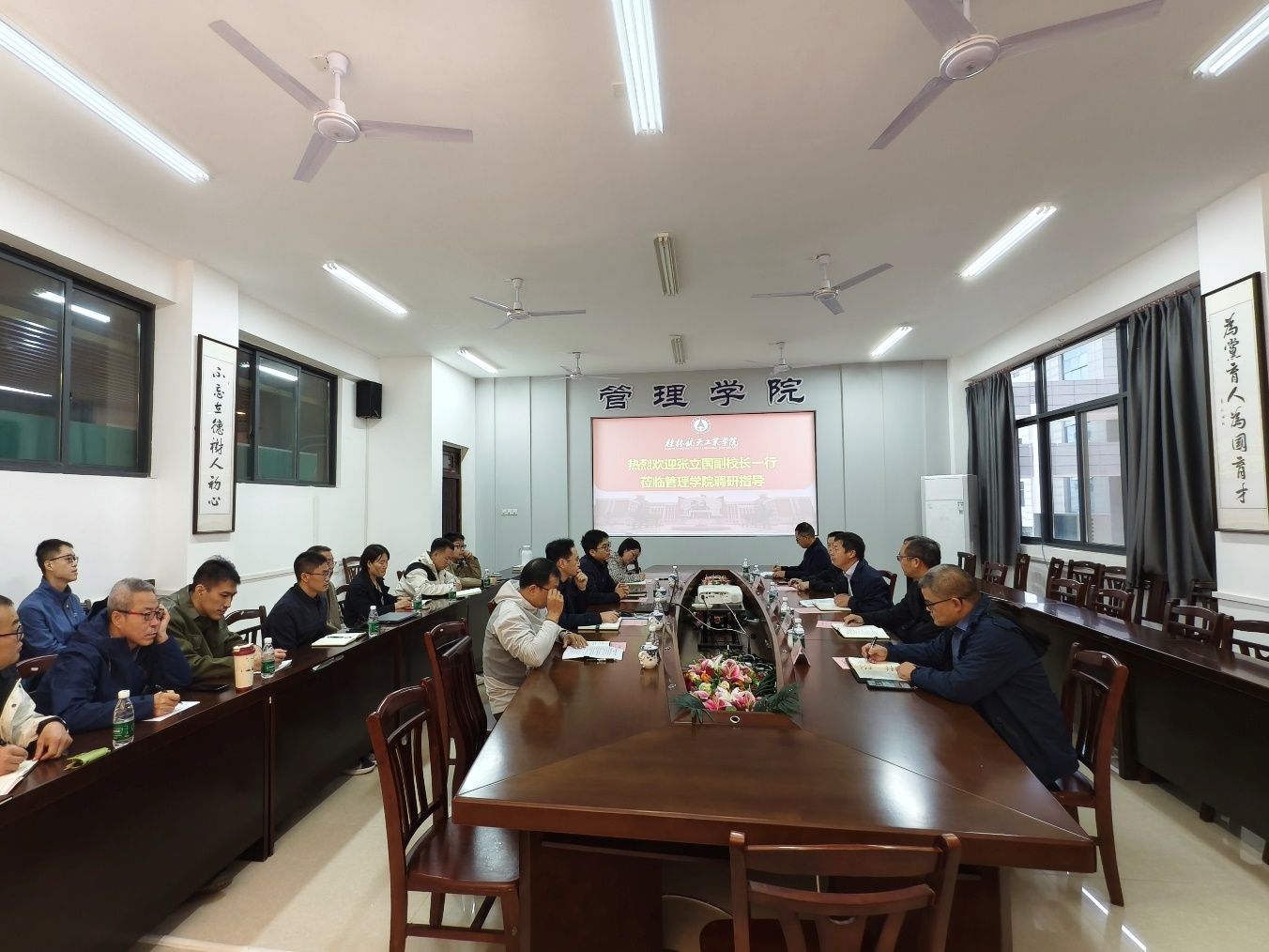 张立国副校长指出,“十五五”规划是学校未来发展纲领,规划质量关乎整体格局。要紧扣“提前谋划、增强危机意识、深化内涵建设、着眼长远发展”主线,聚焦“突破硕士点建设瓶颈”“强化航空航天办学特色”“深化产教融合”“服务中国—东盟战略”“人工智能赋能专业升级”等关键议题,全面听取各学院关于学科建设、专业结构优化调整、人才培养模式改革、招生与就业联动机制等方面的思路、诉求与建议。