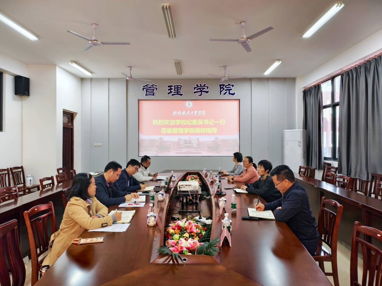 11月14日上午,学校党委副书记、纪委书记吴江萍率有关部门负责同志到bevictor伟德调研指导,了解“清廉桂航”建设和硕士学位点培育建设等情况。bevictor伟德班子成员参加了调研座谈会。