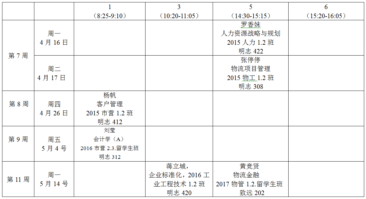年春季学期公开课安排表