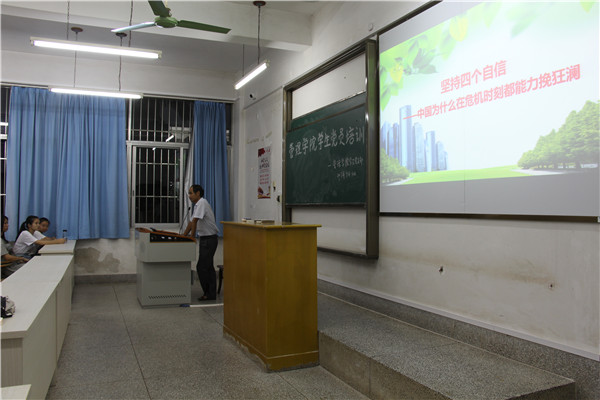 蒋峰华书记主要从六个方面给我们讲解了“道路自信,理论自信,制度自信,文化自信”。第一个方面,中国是原住民大陆国家。我国仍然处于社会主义初期阶段,人民日益增长的物质文化需求同落后的生产力之间的矛盾仍然是我们面临的主要矛盾。蒋峰华书记还以巴西这个殖民主义国家为例子说明了我国大多数都是原始居民,让同学们感受到了中国特色社会主义道路的正确性;第二个方面,民国的危机与败亡。民国倡导工业化,工业化城市为主的现代化,形成了巨大的成本无法转嫁,没有现代化的财政金融,现代化成本过高,最终导致了民国的灭亡,从另一方面印证了社会主义道路的正确性;第三个方面,土地革命现代化。目前我国有88%的农民,我党只需要解决12%城里人的就业问题就能使国家安定,所以要进行土地改革,努力做到耕者有其田;第四个方面,中国解决危机的经验。中国经过十年动荡,终于明白建设社会主义必须以经济建设为中心,不能以阶级斗争为纲领,其次,要注重发展农民经济,要以广大群众的利益为中心;第五个方面,推进生态文明建设。“生态兴则文明兴,生态衰则文明衰。”党的十八大以来,习近平总书记以深邃的思考直面人民诉求,以全新的理念指导生态文明建设,谋篇布局、改革制度、抓铁有痕,中国正在努力探索一条超越传统增长模式的绿色发展道路;第六个方面,注重三个平衡——劳动力平衡,经济平衡,地区平衡。在脑力劳动和体力劳动尽可能找到一个平衡点,最大程度缩小贫富两极分化,振兴东北老工业区,发展西北经济,努力做到三个平衡。