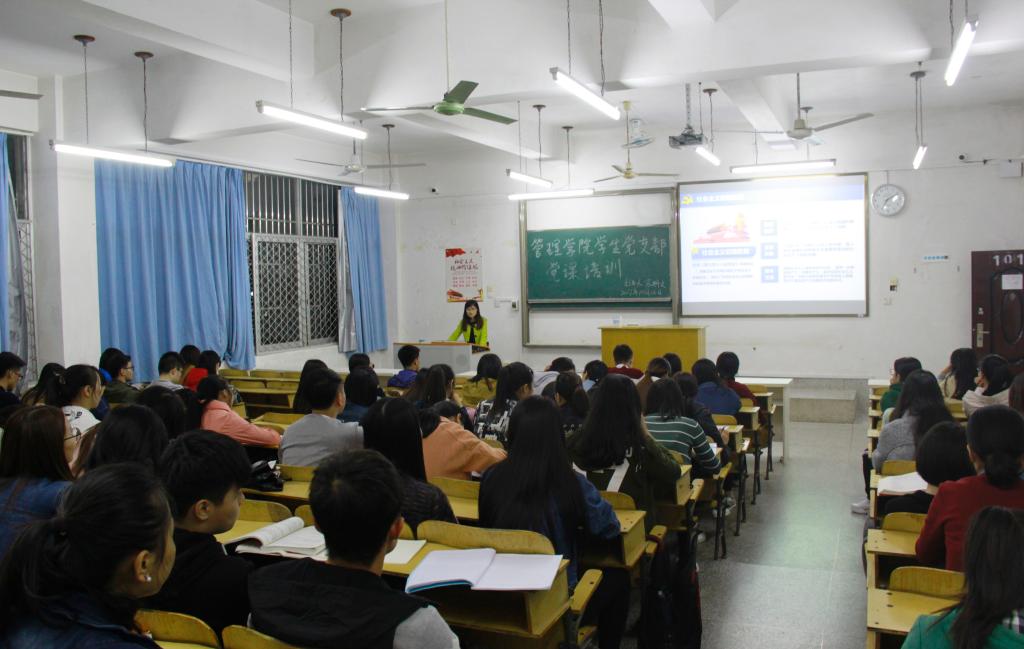 2017年10月16日晚上19:00,支部在致远楼101室开展了以“中国共产党章程解读”为主题的党课培训活动。通过对“中国共产党章程”的学习,进一步加深了学生党员对党章的涵义及党员职责要求的认识,在新时期让学生党员们时刻保持党员的先进性,强化党员意识,增强服务本领,树立良好的党员形象,充分发挥党员作用,随时随地都能成为同学们的榜样。通过这次党员培训活动,提高了大学生党员的思想素质,促进学生党员充分发挥先锋模范的作用,保持党组织的活跃性和先进性,优化学生党组织的结构。