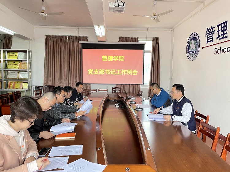 11月15日,管理学院召开党支部书记工作例会,对学习贯彻党的十九届六中全会精神进行部署。