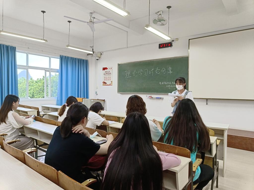 首先由陈天枫对本次的学习分享进行主题传达,其次分别由胡卓雨、靳雅琪、廖家欢三名同志进行三个主题发言,接着,由剩下的同志们针对此次的学习主题进行学习成果的分享和汇报,共享学习成果,进行交流讨论。最后,陈天枫同志对本次的学习分享进行总结和汇报,指出,大家都提前学习相关文件、认真准备分享内容、积极完成了学习任务,但是有个别同志对于会议精神的理解不够深入透彻,希望在今后的学习生活中继续加强对理论知识的深入学习。