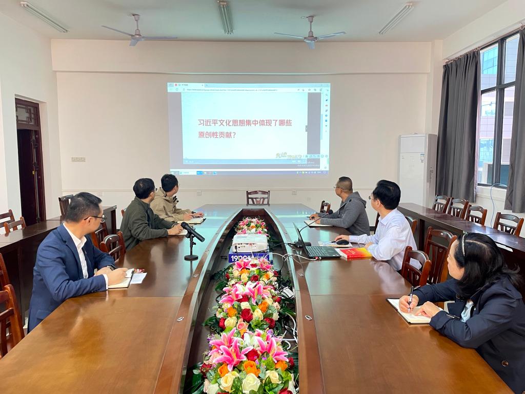 大家谈到,在全国宣传思想文化工作会议上,首次提出习近平文化思想,这一重要思想深刻回答了新时代我国文化建设举什么旗、走什么路、坚持什么原则、实现什么目标等根本问题,丰富和发展了马克思主义文化理论。我们要坚持以习近平文化思想为指引,认真落实“七个着力”要求,在“六个方面”下功夫,扎实抓好学院宣传思想文化工作。当前,尤其要高度重视意识形态领域新动向,绷紧意识形态安全这根弦,有针对性做好工作,确保安全稳定。