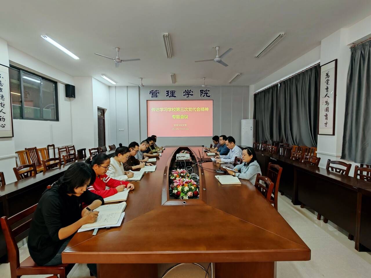 会议传达了学校第三次党代会的基本情况与主要精神,指出这次大会全面总结了学校第二次党代会以来党的建设和事业发展取得的成绩及经验,分析了改革发展面临的形势,明确了新时代新征程学校的使命任务和今后五年的奋斗目标,充分展示了全校上下踔厉奋发、勇毅前行的气魄和胆识,必将激励全校党员干部、师生员工同心同德、守正创新,以更加斗志昂扬的精神面貌,更加求真务实的工作作风,奋力开创学校发展新局面。