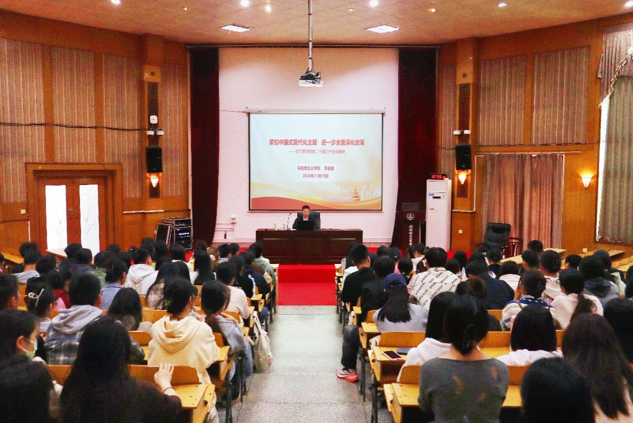 为深入学习贯彻党的二十届三中全会精神,11月19日中午,bevictor伟德组织学生党员在北校区致远楼108报告厅听党课,马克思主义学院教师李孟星应邀讲解《紧扣中国式现代化主题,进一步全面深化改革——学习贯彻党的二十届三中全会精神》。