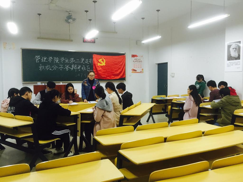 2017年11月14日中午12:40,支部在明志楼306室开展了积极分子入党前的答辩会议。有了前一日讨论会的思想前提,本次答辩会顺利开展了起来。
