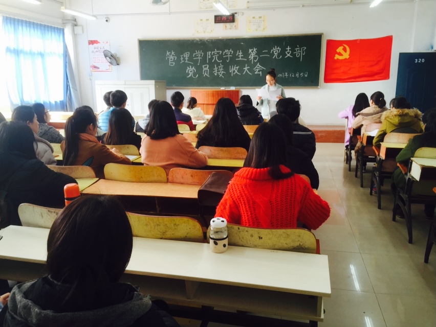 2017年12月5日,支部在明志楼320室召开了“党员接受大会”,会议上讨论了关于接收张颂扬等14名同志成为预备党员的问题。