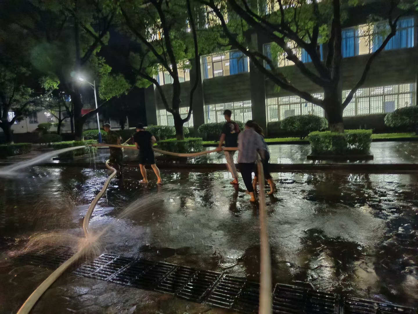 6月4日晚桂林突发特大暴雨,学校部分区域受到雨水不同程度的侵袭。面对突如其来的暴雨,学院党委迅速部署,各支部党员积极行动对校园道路进行清扫。