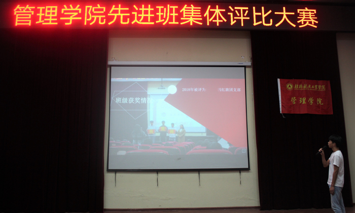 本次有8个班级参加评选,通过PPT播放,班级代表以铿锵有力的言语分别从班级的学风建设、班级建设、班级形象、班级荣誉、班级文体活动、班级特色等内容来展示班级风采,体现出了班级团结友爱、积极上进的班级风貌。“天行刚健,市场一班,勇攀高峰,志在拿云”2018级市场营销1班的口号让现场师生产生共鸣。评选大赛中穿插的互动环节“校情校史知识问答”调动了在座学生的积极性,活跃了现场气氛。先进班集体最终的评分由现场展评分数和班级工作量化考核分数两部分组成,并向学校推荐5个先进班集体。