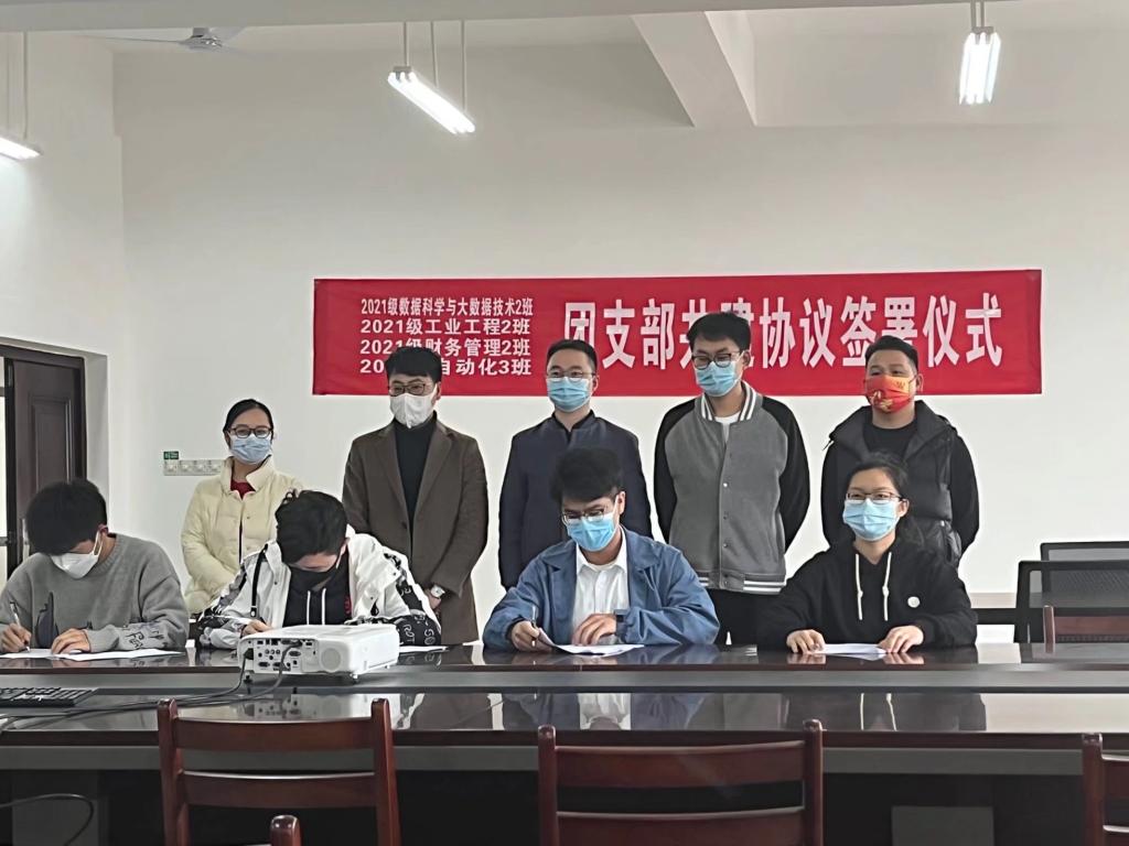 2022年4月1日,bevictor伟德2021级工业工程2班团支部、财务管理2班团支部与理学院2021级数据科学与大数据技术2班团支部、电子信息与自动化学院2021级自动化3班团支部及各团支部辅导员在启天楼A505举行团支部共建协议签署仪式。本次团支部共建旨在精准对接降低挂科率、提高考研率、落实毕业生就业率,积极开展创先争优活动,坚持团建带群建,群建服务团建,抓牢“三早一晚”工作,加强班风、学风的建设,形成学先进、赶先进、当先进的浓厚氛围。