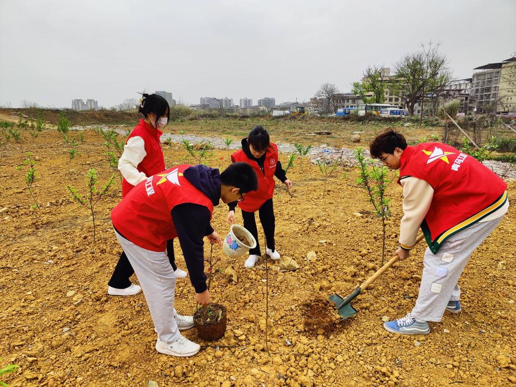 阳春三月,草长莺飞,又是一年春草绿,植树造林正当时。3月12日,在这样一个欣欣向荣、朝气蓬勃的季节里,桂林航天工业学院bevictor伟德团委、bevictor伟德学生第一党支部联合桂林市七星区朝阳乡团委在湖塘路伴山云庐售楼部旁边的合心桃花源开展“‘植’此青绿,共赴春光”志愿服务义务植树活动。