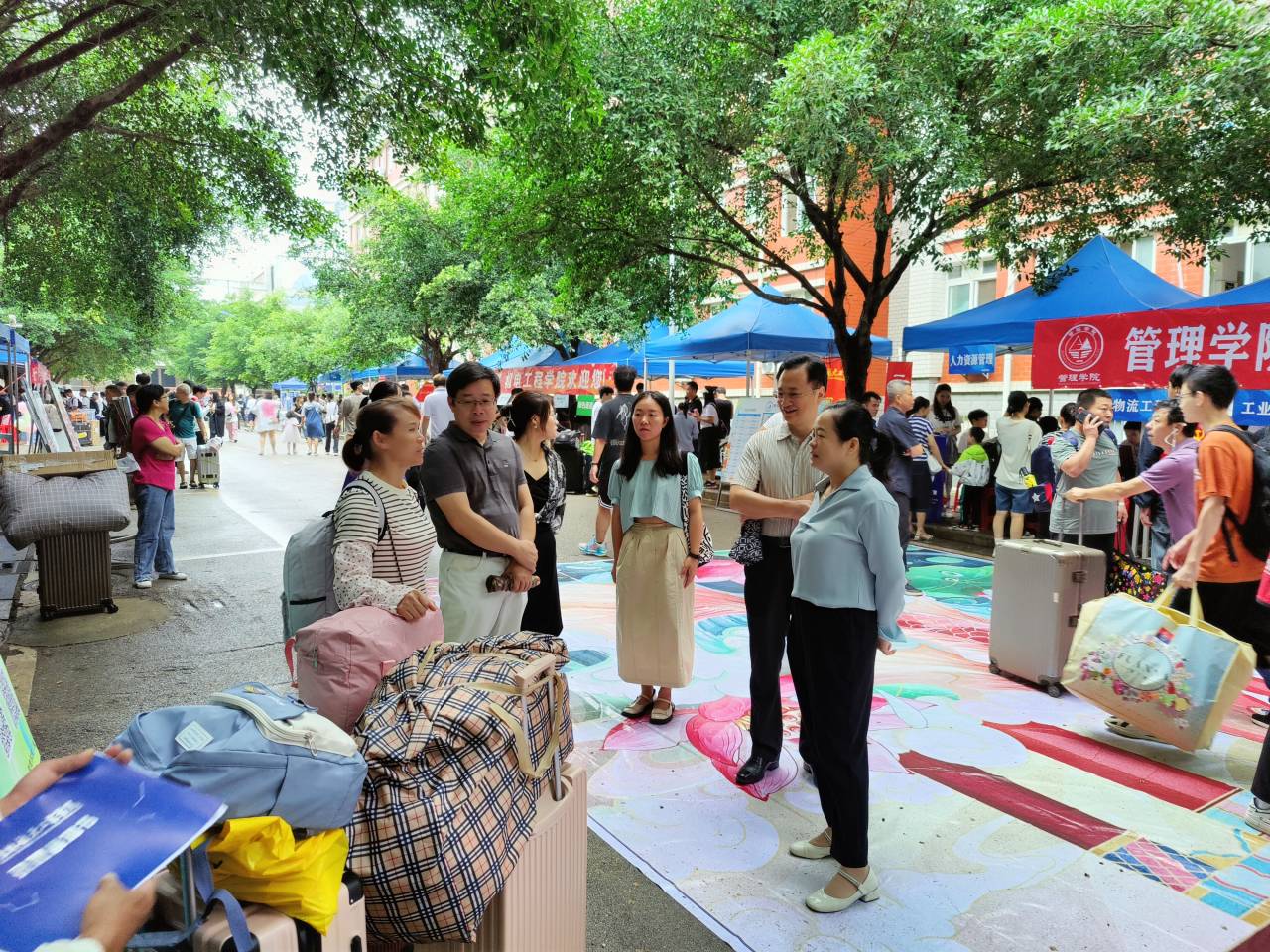 迎新期间,学院党委书记尹剑武、院长张一纯、党委副书记潘小玲来到新生报到现场,了解询问迎新工作的开展情况,与前来报到的新生和家长亲切交流,及时了解学生需求。