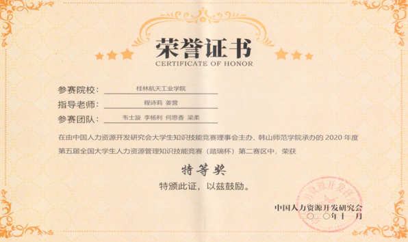 桂林航天工业学院人力资源管理专业始建于1985年的劳动人事管理专业,1994年设置人力资源管理专科专业,2012年升格为我校第一批本科专业,2013与美国中央华盛顿大学合作举办“2+2”本科教育项目。本专业现有在校生近800人,生源来自于广西、北京、河北、山西、浙江、安徽、福建、山东、河南、广东、海南、云南等18个省市(自治区)。根据艾瑞深中国校友会网2022年专业评估中,桂林航天工业学院人力资源管理专业排名全国第8,获评五星级专业,位列广西高校同类专业第一名。