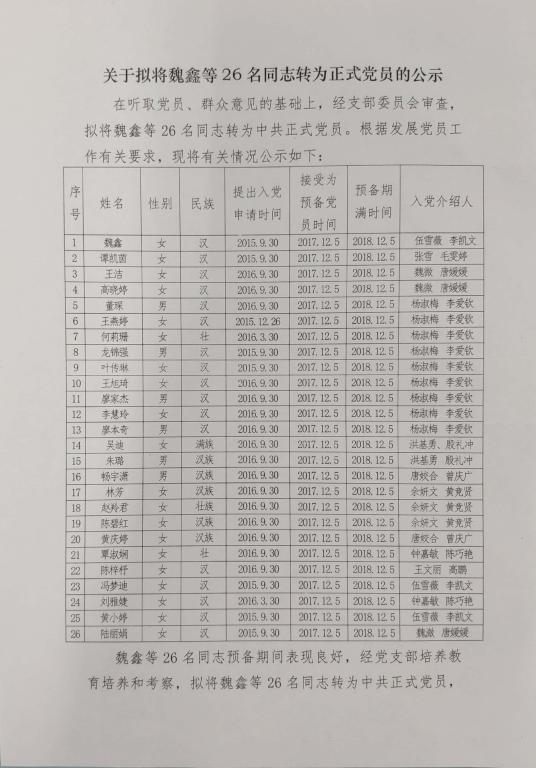 关于拟将魏鑫等26名同志转为正式党员的公示