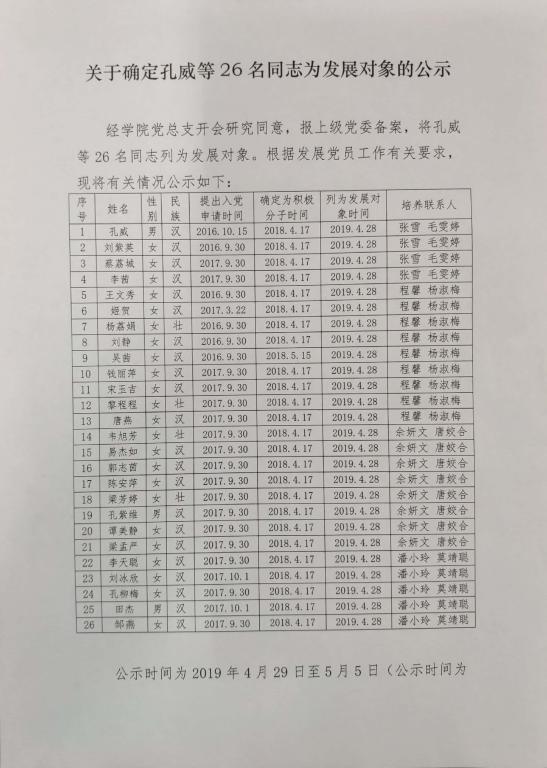关于拟将魏鑫等26名同志转为正式党员的公示