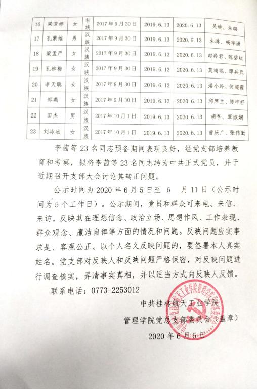 关于拟将李茜等23名同志转为正式党员的公示
