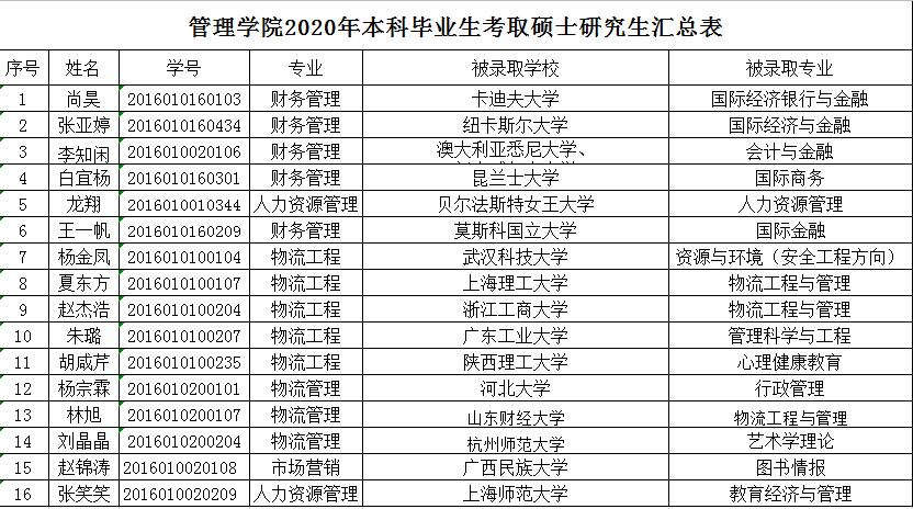 bevictor伟德2020年本科毕业生考取硕士研究生汇总表