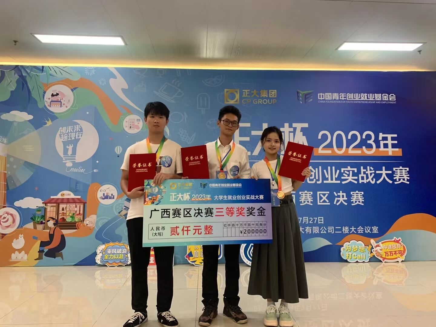 7月27日,在桂林举行了正大杯2023年大学生就业创业实战大赛广西赛区决赛。来自广西科技大学、桂林航天工业学院的8支队伍的项目经过相互交流、切磋,在这个舞台上充分展示了他们的实战营销成果和商业项目。