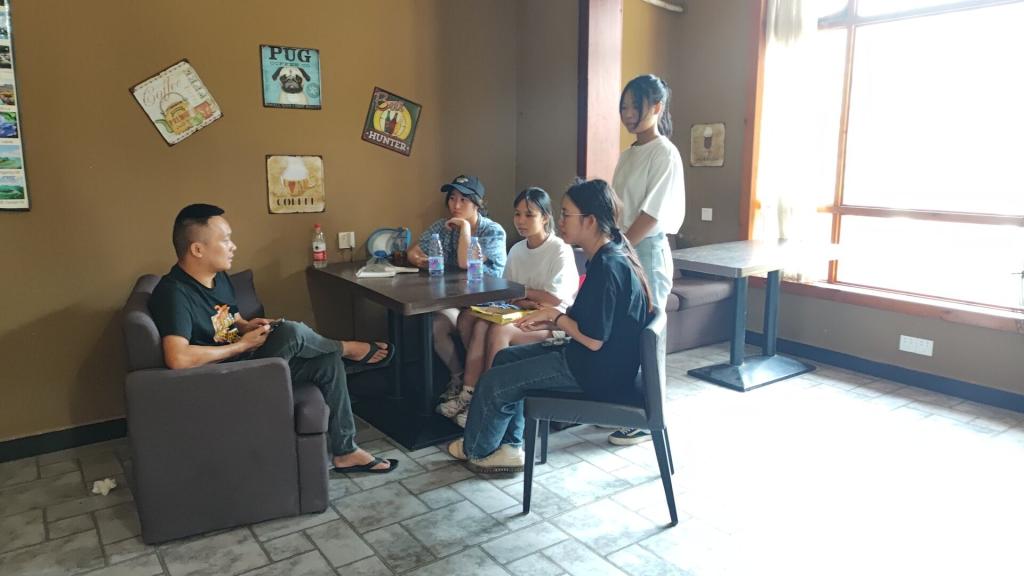 图为调研小组与民宿负责人进行交流 多彩大学生网通讯员 谢焱 摄