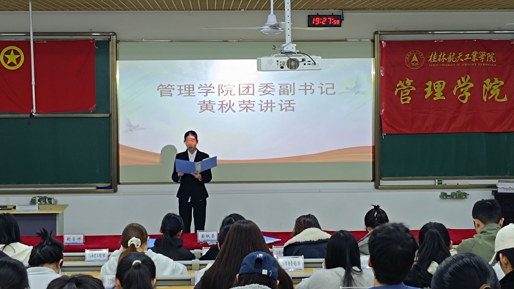 钱震、黄尧同学分别作为新、老团员代表发言,表达了践行初心、勇担使命的决心。黄秋荣同学代表学院团委向新团员表示祝贺,并寄语大家:一要坚定信仰,筑牢根基;二要勤学实干,锤炼本领;三要勇担重任,争做先锋。