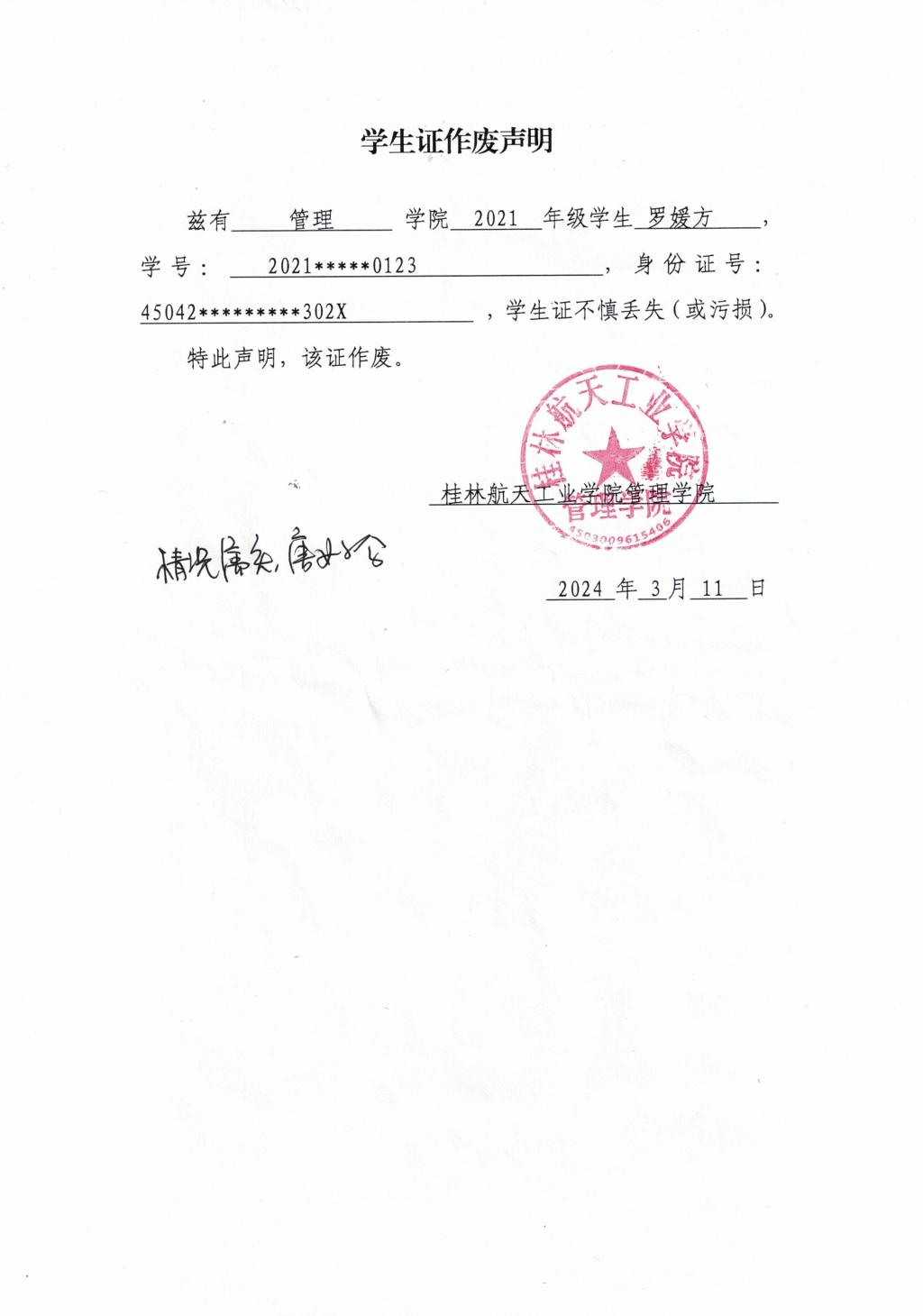 罗媛方学生证作废声明