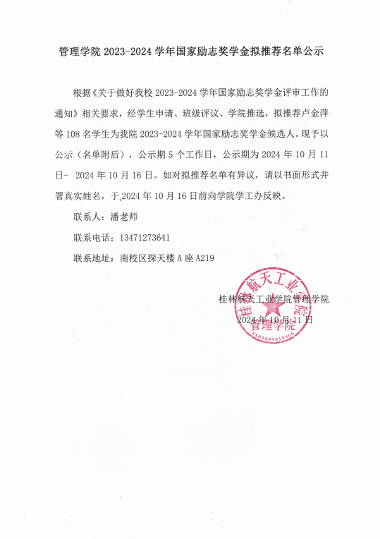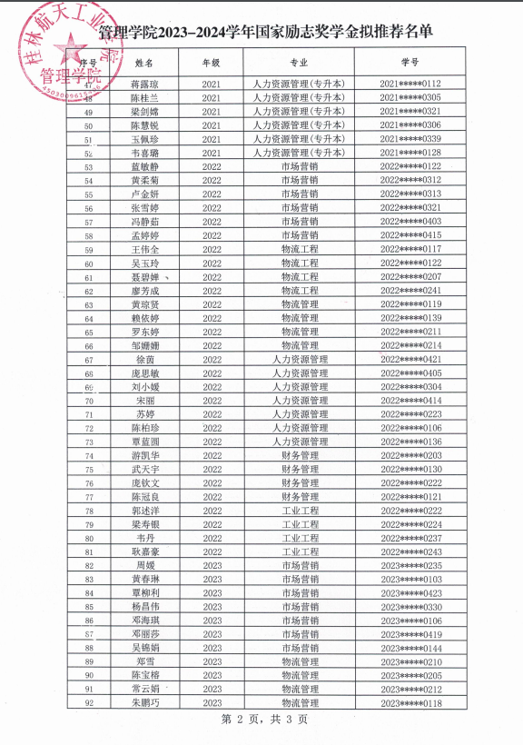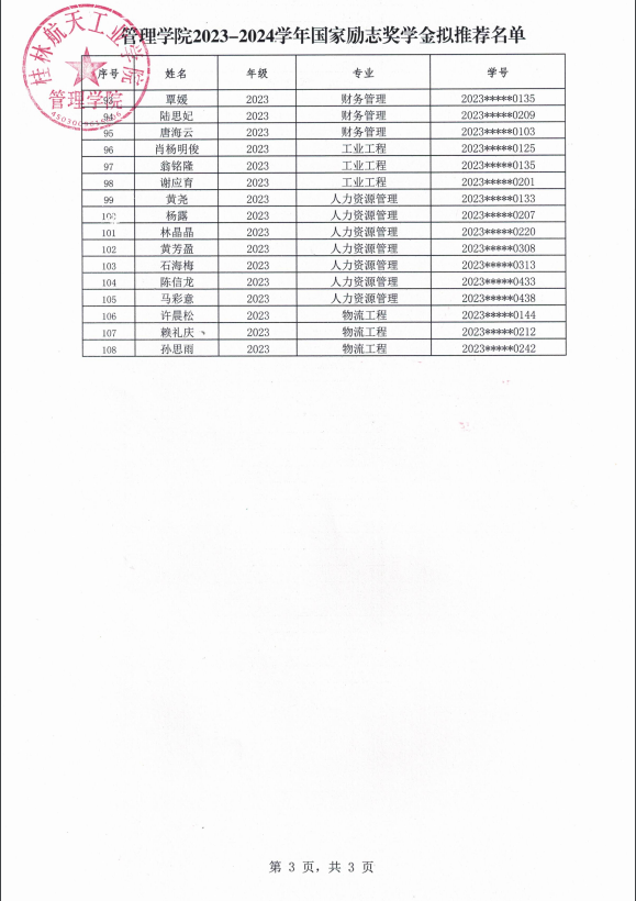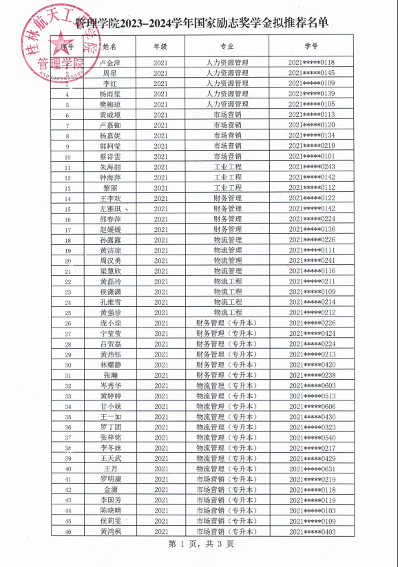 bevictor伟德2023-2024学年国家励志奖学金拟推荐名单公示