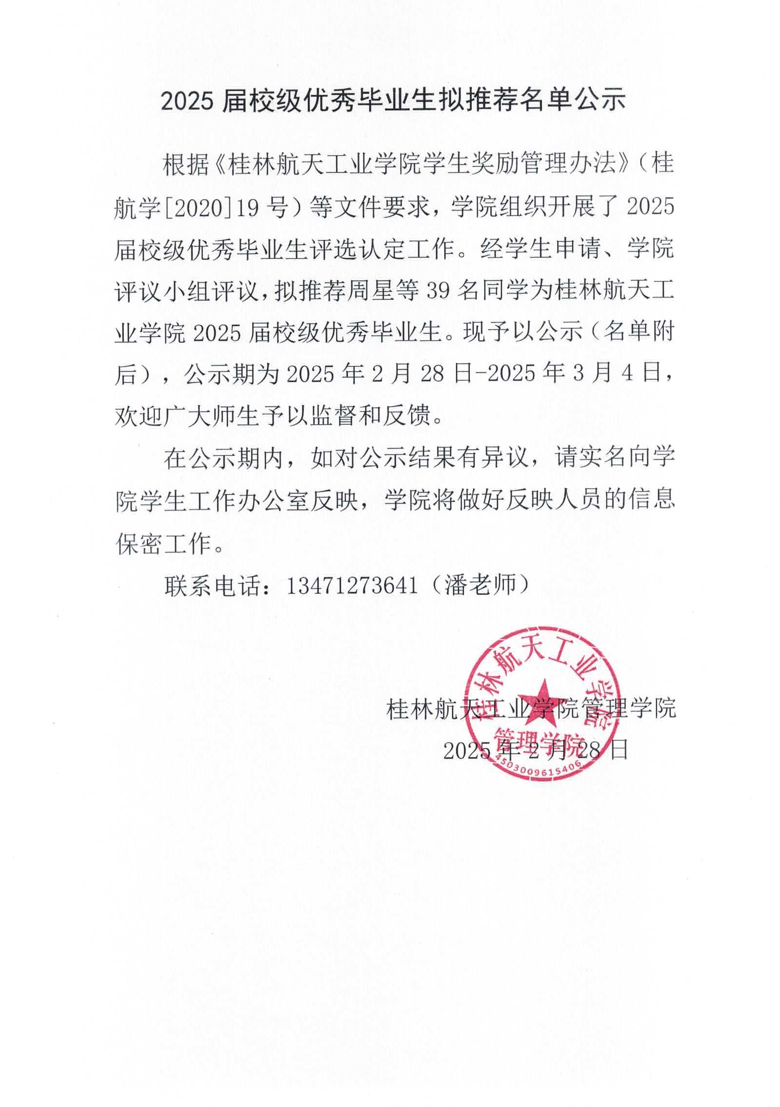 2025届校级优秀毕业生拟推荐名单公示