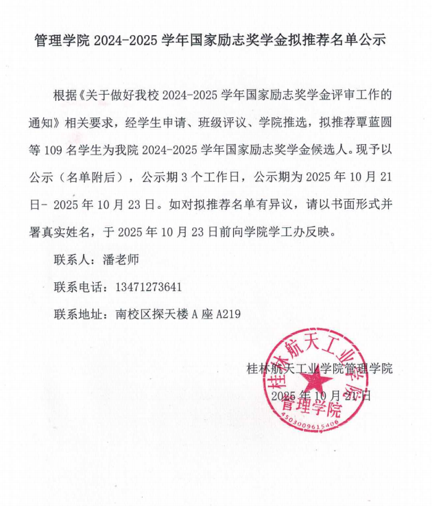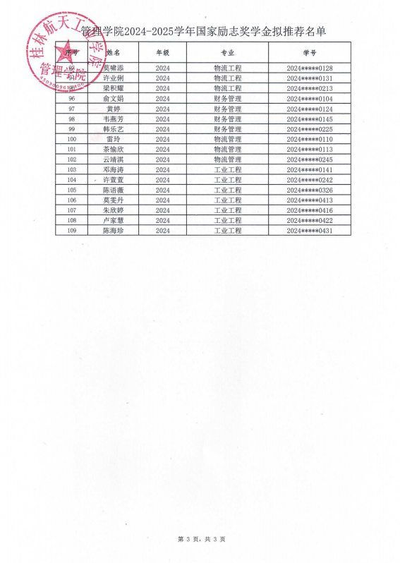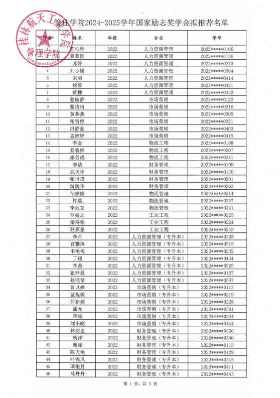 bevictor伟德2024-2025学年国家励志奖学金拟推荐名单公示