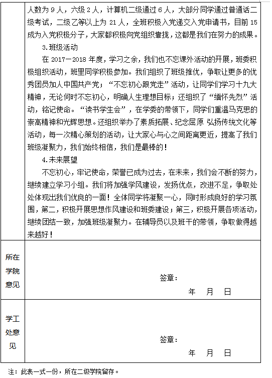 2016级物流工程1班先进班集体推荐登记表
