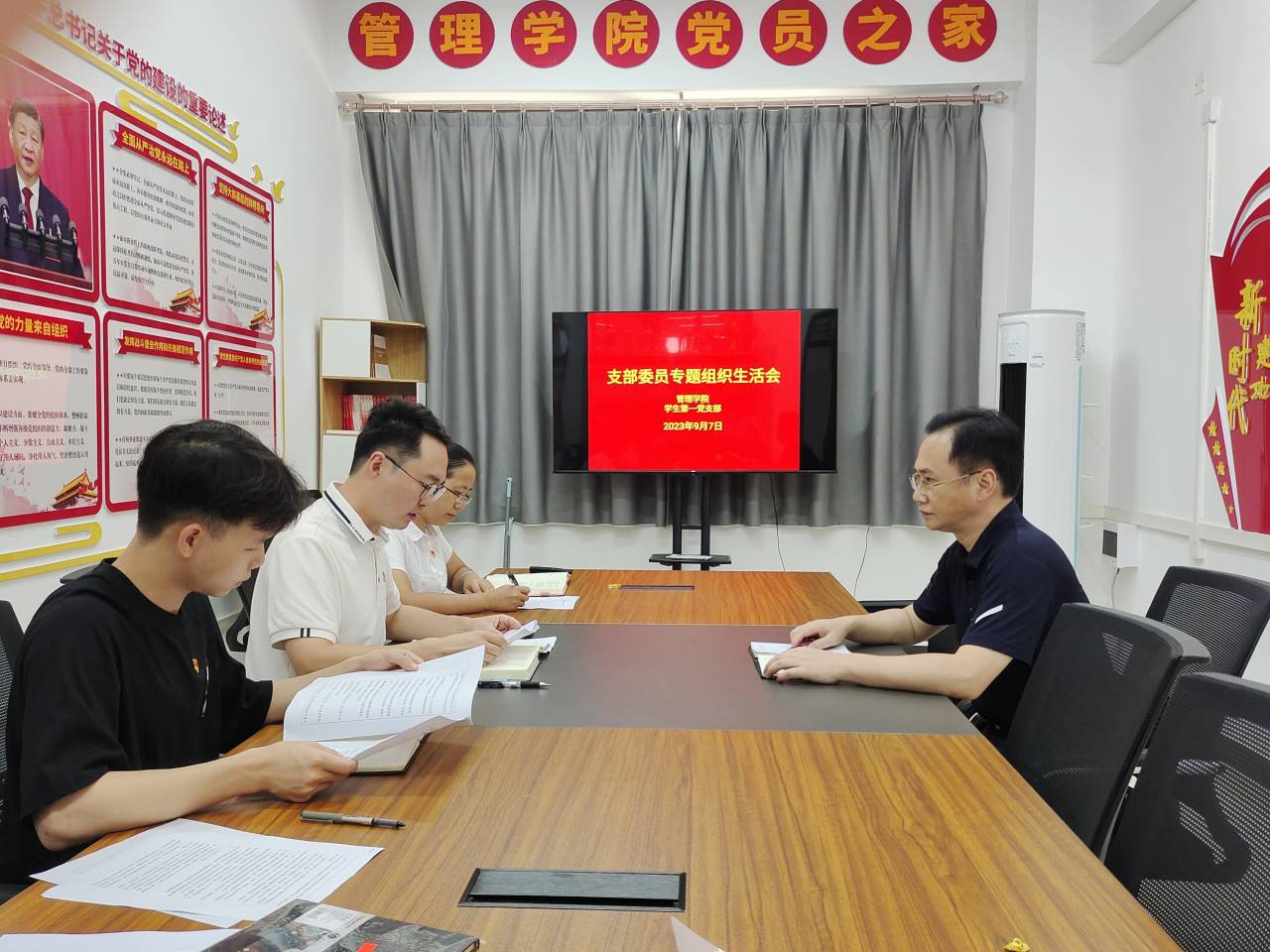 会上,支委一起学习习近平总书记的重要论述和党内法规,并分享学习体会。深刻领悟以学铸魂、以学增智、以学正风、以学促干的丰富内涵和实践要求,坚定正确的工作态度,牢固树立遵守党章的意识,保持党员的政治本色。
