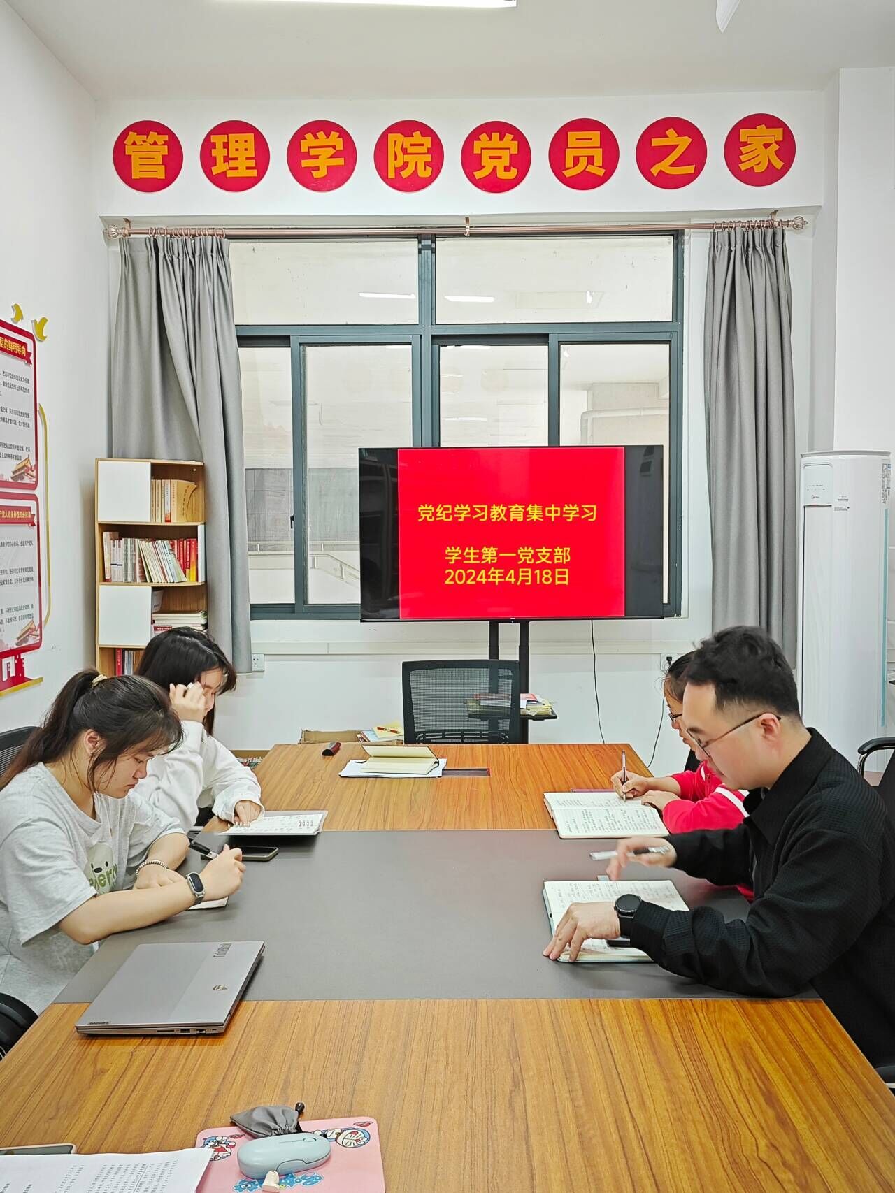 4月18日下午,bevictor伟德学生第一党支部于探天楼A212召开支部委员会。会议由支部书记杭盖同志主持,支部委员参加会议,材料组组长陈灵琴,实践组组长郭柯莹,理论组组长李健坤列席会议。