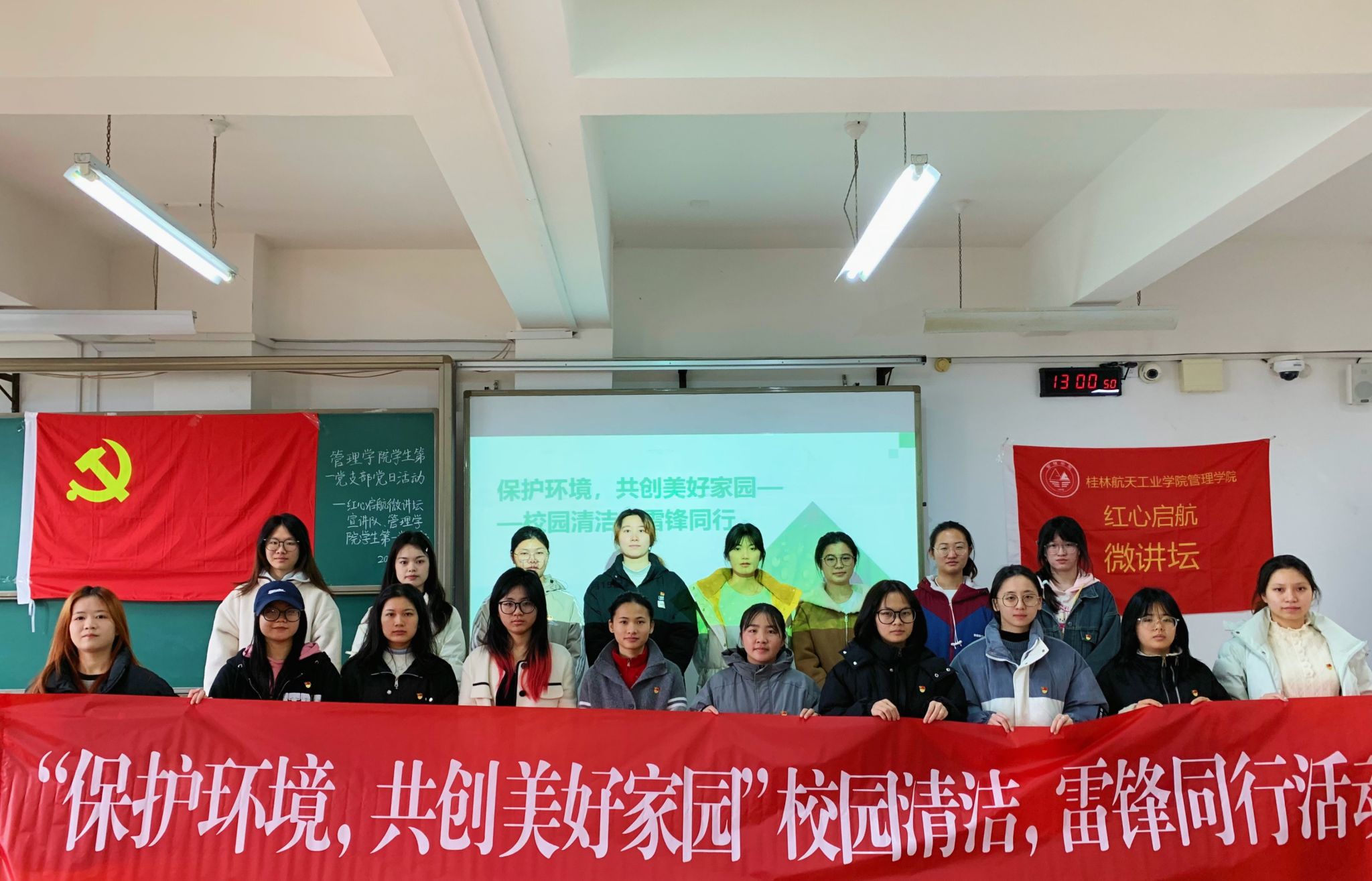 紧接着,党支部和学院团委共同开展了“保护环境,共创美好家园”为主题的校园清扫活动,由党员代表科普垃圾分类知识,引导大家正确进行垃圾分类,树立环保意识,并组织带领同学们对校园的道路及公共设施等进行清洁。